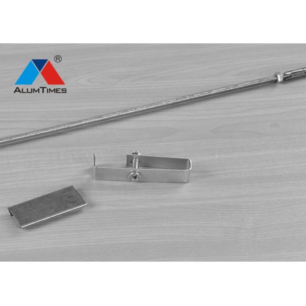 Aluminum Square/rectangular panels with vertival/beveled edges are fixed to an adjustable suspension system,the panel ends to be raised and executed with dimple points to ensure positive engagement into clip-in profiles,the suspension system comprises of 38 main keel,triangle keel,connection bracket,hanging pole and explosive bolt,all galvanized.